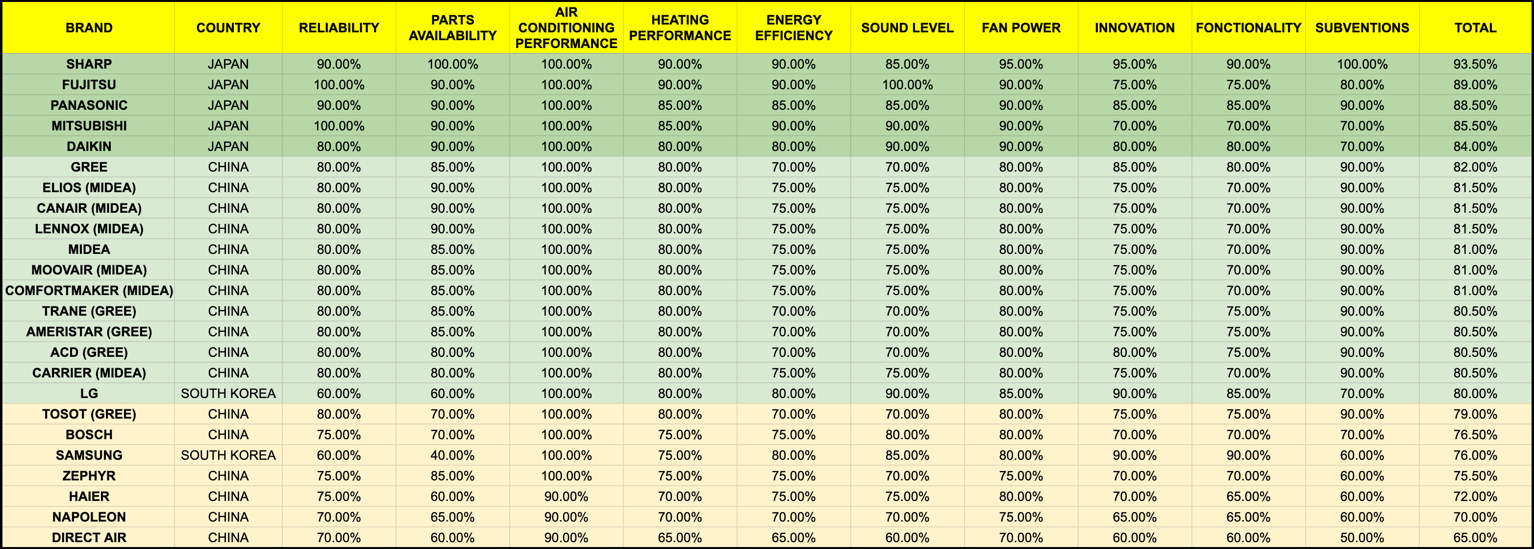 - Local experience: Well-established brands like Fujitsu, Sharp, Gree and Midea have adapted their products over the years. They offer proven solutions, adapted to our climate.