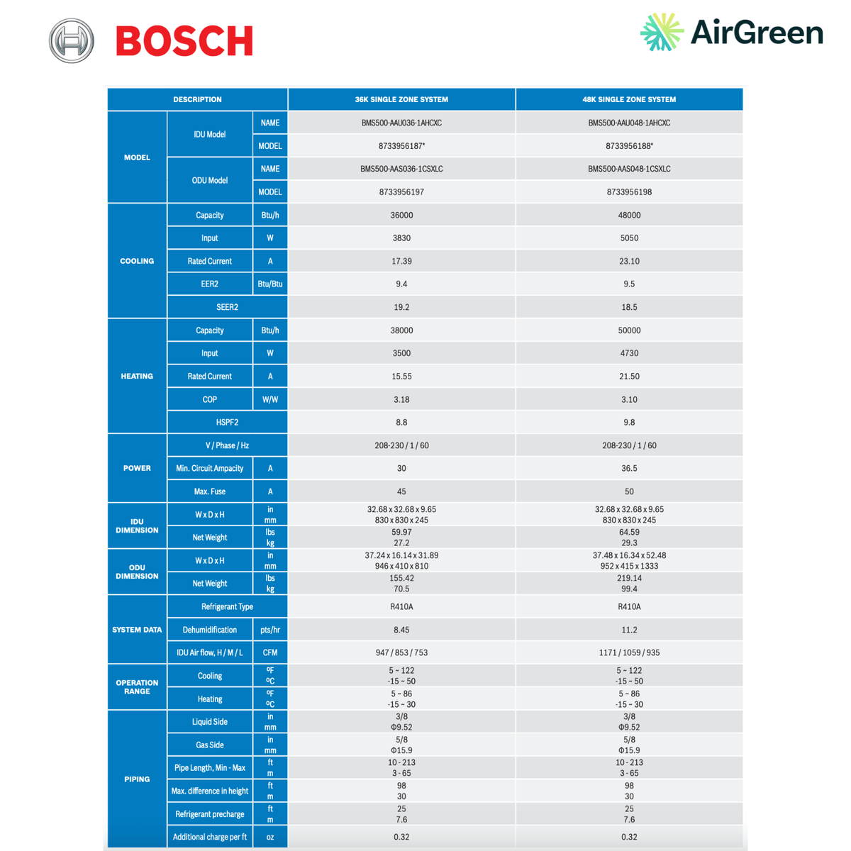 - Freon: R-410A, reflecting our commitment to a healthier environment.