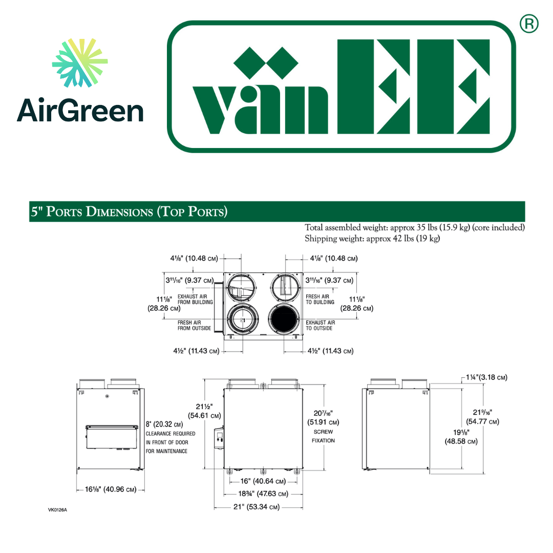 The vänEE AI Series V110H65RT is not ENERGY STAR© qualified, but it doesn't compromise on performance. It's a powerhouse, delivering 110 CFM with a SRE of 65%, ensuring efficient heat recovery and air exchange. The dimensions of 21 x 21.5 x 16.13 inches make it a compact yet powerful unit for residential use.
