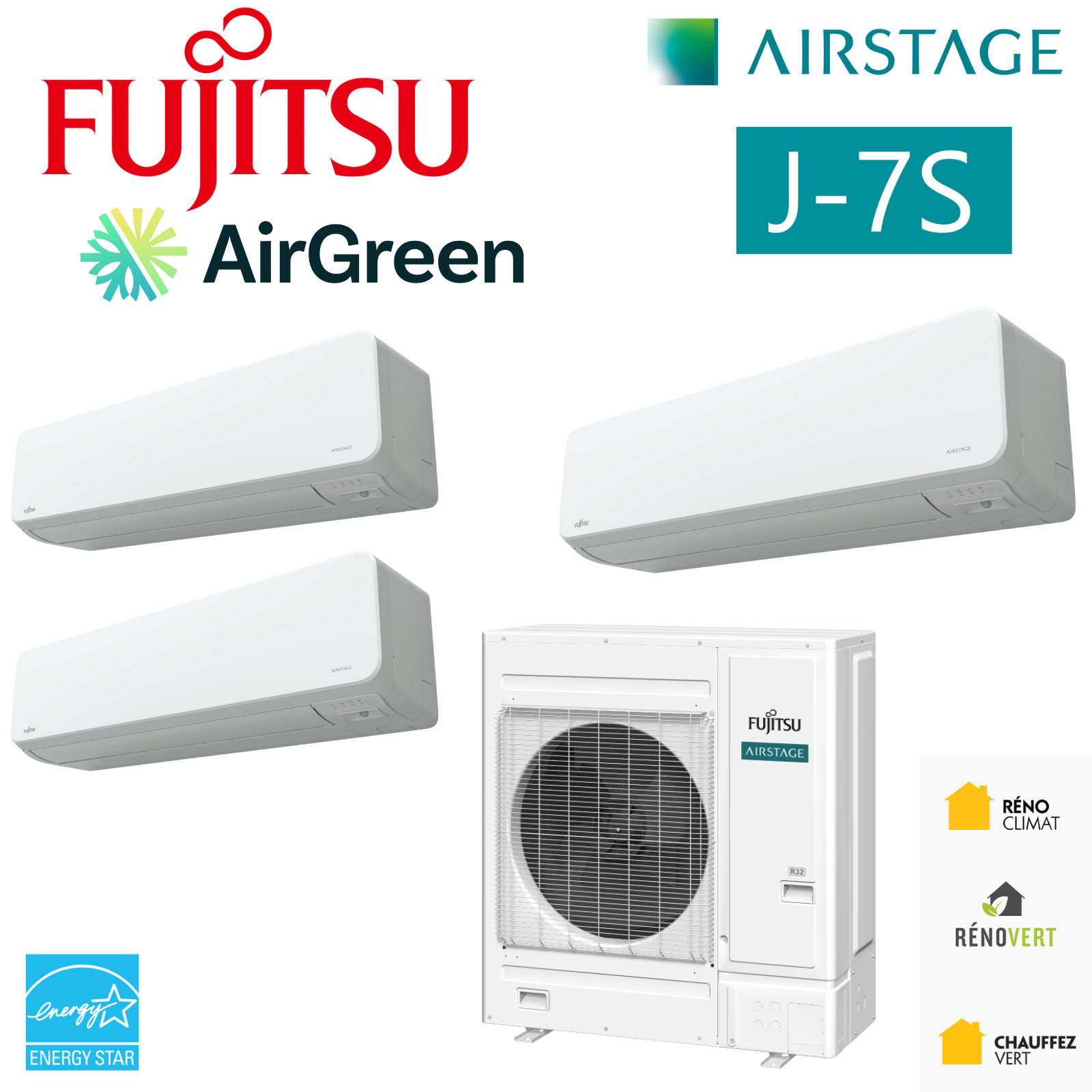 At AirGreen , we never present an HVAC system in a theoretical way. Every product we install is evaluated through real-world projects: renovated older homes in Montreal, multi-unit residential buildings in Laval, mixed-use buildings in Longueuil, high-end residences on the North Shore , and new construction on the South Shore . The FUJITSU AIRSTAGE J-7S Mini-VRF 24,000 BTU – 3-zone R32 is one of those systems that we've come to appreciate in the field, season after season.