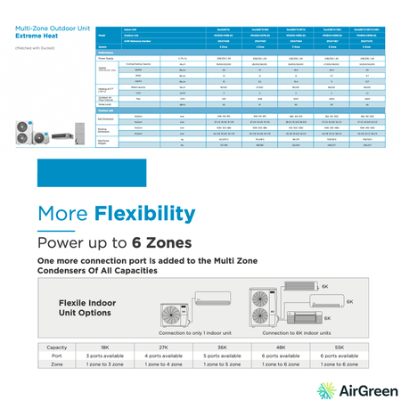 48,000 BTU Inverter Compressor : This high power is ideal for larger areas. At AirGreen, we regularly install these systems in two- or three-story homes, as well as medium-sized commercial buildings.