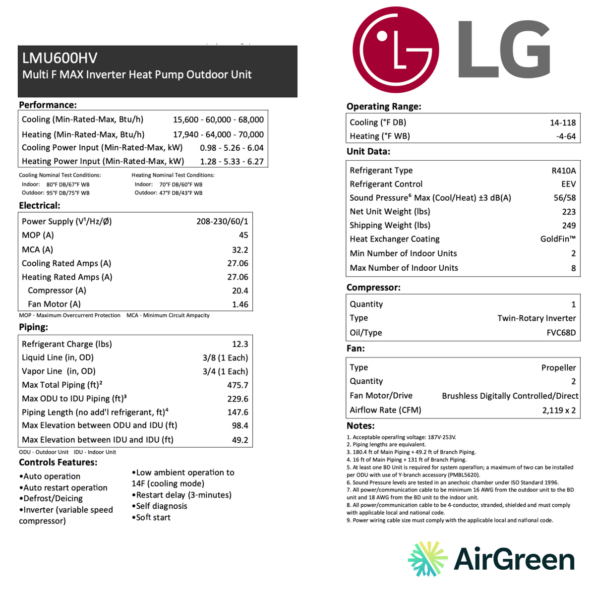 LG MULTI F 6-Zone Heat Pump | 60,000 BTU Compressor | Montreal, Laval, Longueuil, South Shore and North Shore