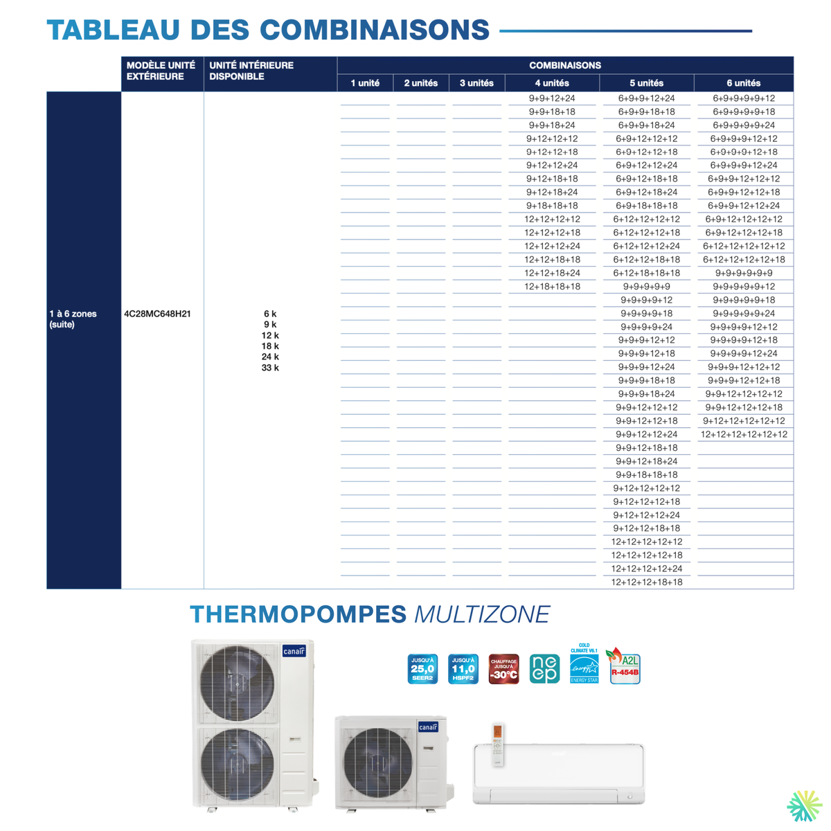 At AirGreen , we know that in Quebec, indoor comfort can't be left to chance. Between bitter winters at -30°C and increasingly hot summers, your heating and cooling system must be able to adapt to everything. That's why we offer the CANAIR 4C28 - R454B | 4-Zone - 27,000 BTU Outdoor heat pump , a high-performance wall-mounted system designed for the Quebec climate . This model combines cutting-edge technology, energy efficiency, durability and optimal comfort , while respecting the environment.