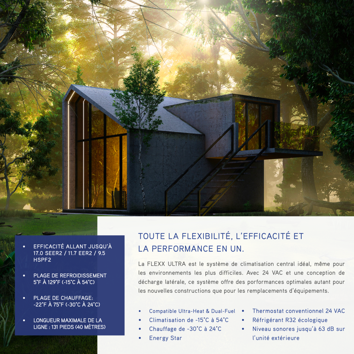 The GREE FLEXX R32 | 5T | Case Coil "ADD-ON" Central Heat Pump is designed for homeowners seeking a reliable, flexible central heating solution adapted to Quebec's climate . Whether for a replacement, renovation, or energy conversion project, this system provides a solid foundation for year-round thermal comfort.