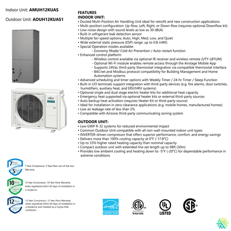 FUJITSU CENTAURI R32 Central Heat Pump | 1 Ton - 12000 BTU