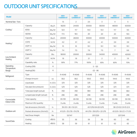 Outdoor unit dimensions: 39.13 x 16.75 x 28 inches