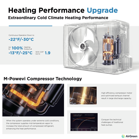 This model is eligible for a $1,764 grant through LogisVert , making it particularly attractive to homeowners looking to make an energy-efficient transition. The MIDEA EVOX G3 uses R-454B gas , an A2L refrigerant with low global warming potential (GWP of 466) , helping to reduce the home's carbon footprint.