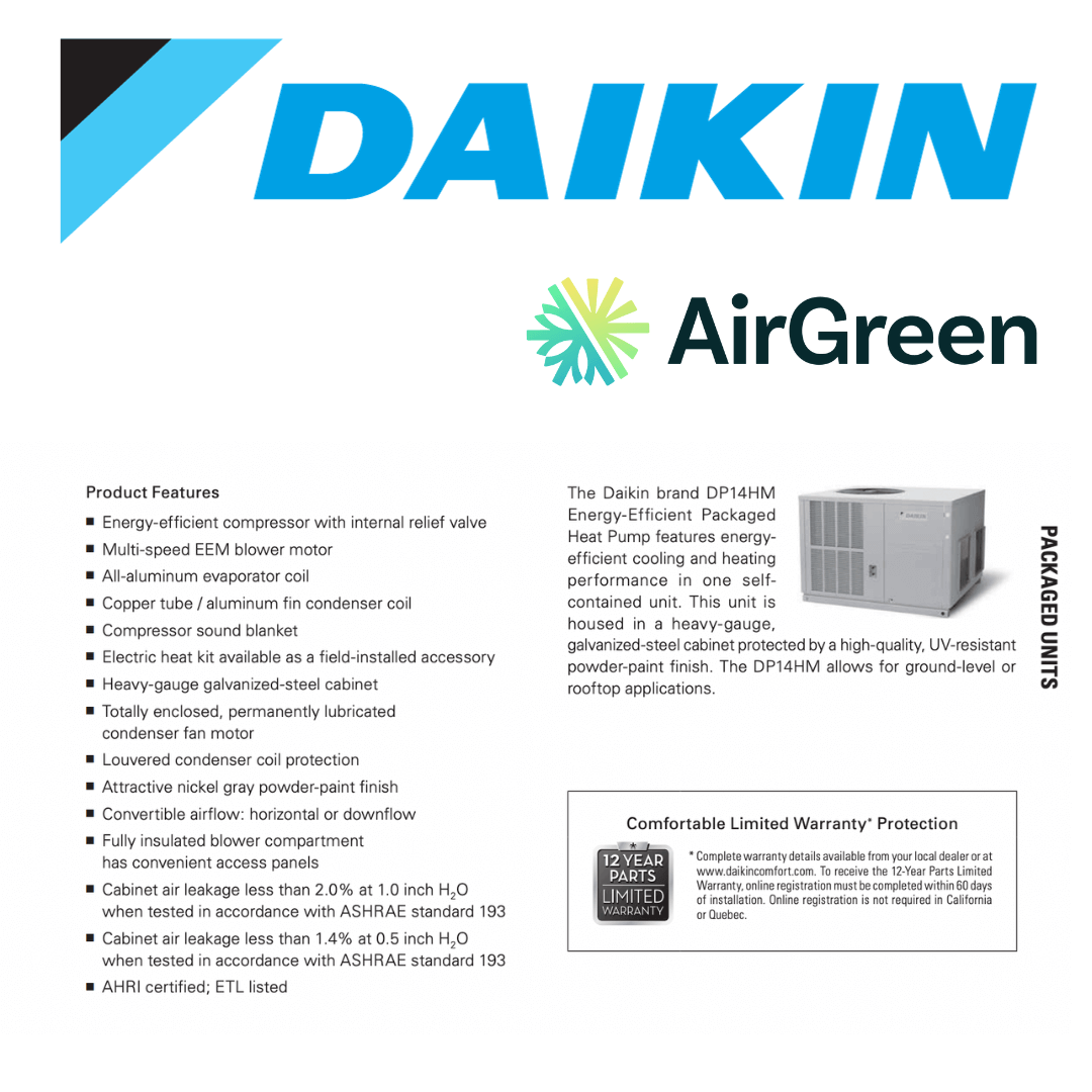 Elevate Your Comfort with AirGreen's 2.5 Ton Daikin DP14HM Packaged Heat Pump