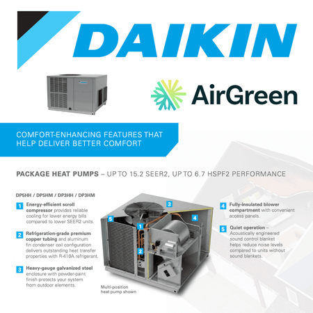 The Daikin DP5HM is not just a packaged heat pump; it's a gateway to a new level of home comfort. It's a commitment to efficiency, a whisper of luxury, and a shield against the caprices of weather. We at AirGreen invite you to step into the future of home climate control. Welcome to the family; welcome to unparalleled comfort.