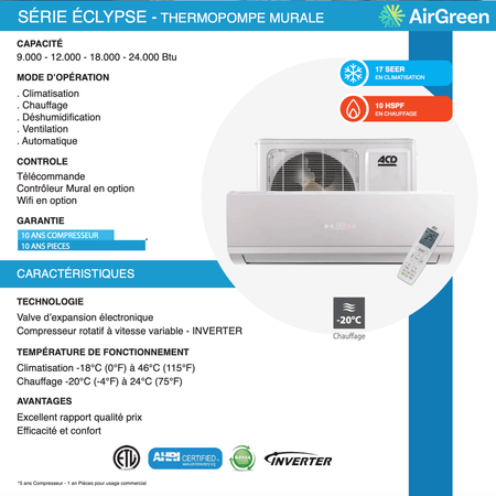 Located in the heart of Montreal, AirGreen specializes in heating, ventilation, and air conditioning (HVAC) services, proudly serving Montreal, Laval, Longueuil, as well as the North Shore and South Shore. We are committed to providing superior quality solutions that combine performance and durability. Today, we are excited to introduce our technological gem: the ÉCLYPSE Wall-Mounted Heat Pump by ACD.