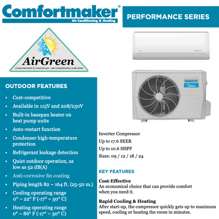 Wall Mounted Heat Pump Comfortmaker (DLCERA) PERFORMANCE of 12 000 BTU Montreal
