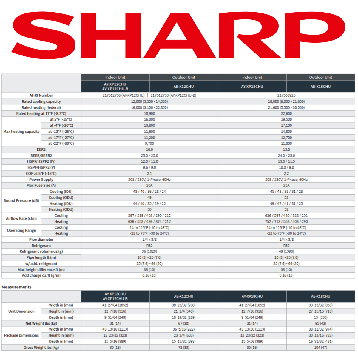 SHARP CHU Wall-Mounted Heat Pump | 18,000 BTU | R32 -30°C