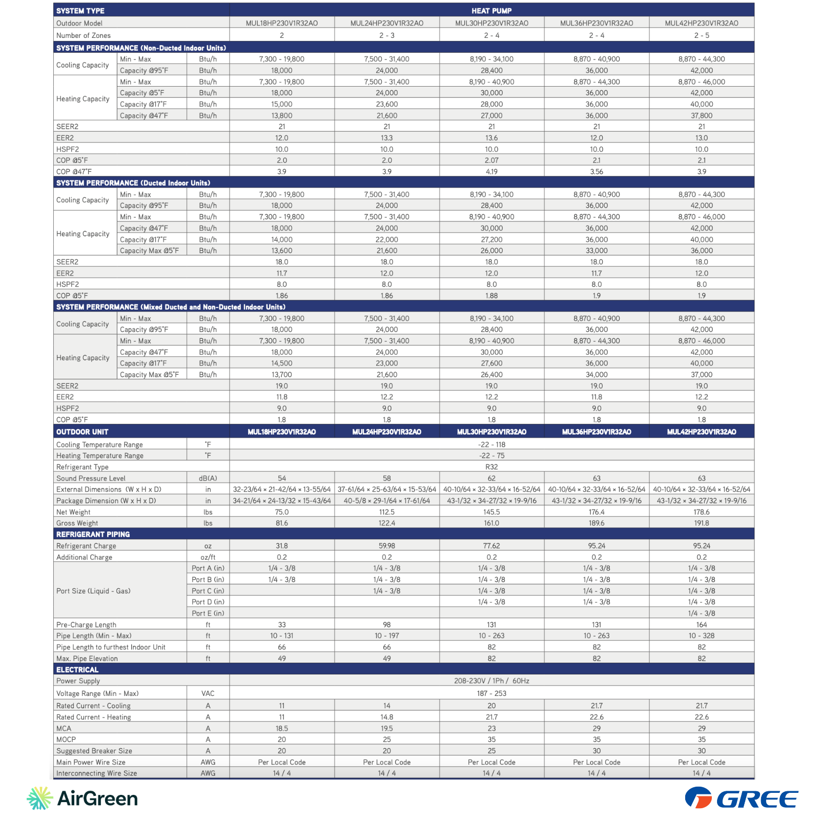 When it comes to choosing an efficient and high-performing heat pump system, the Gree Multi R32 model stands out with its superior features. Equipped with a cooling capacity of 24,000 BTU and a heating capacity that can operate down to -30°C, this system is ideal for the harsh Canadian climates. With an energy efficiency rating of 21.0 SEER2, this model delivers optimal performance while reducing energy costs for the user.