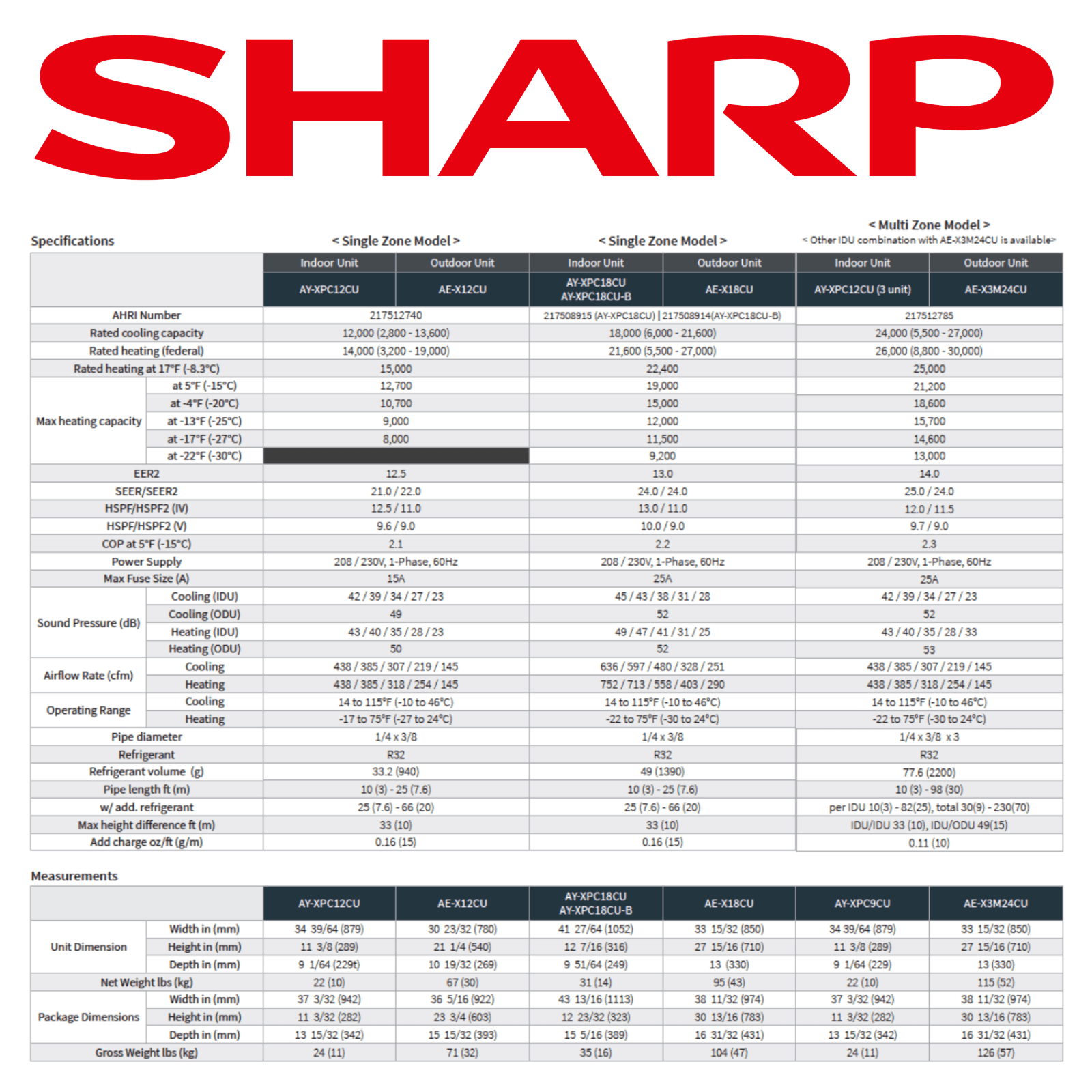 SHARP TripleZone CU Heat Pump | R32 -30°C