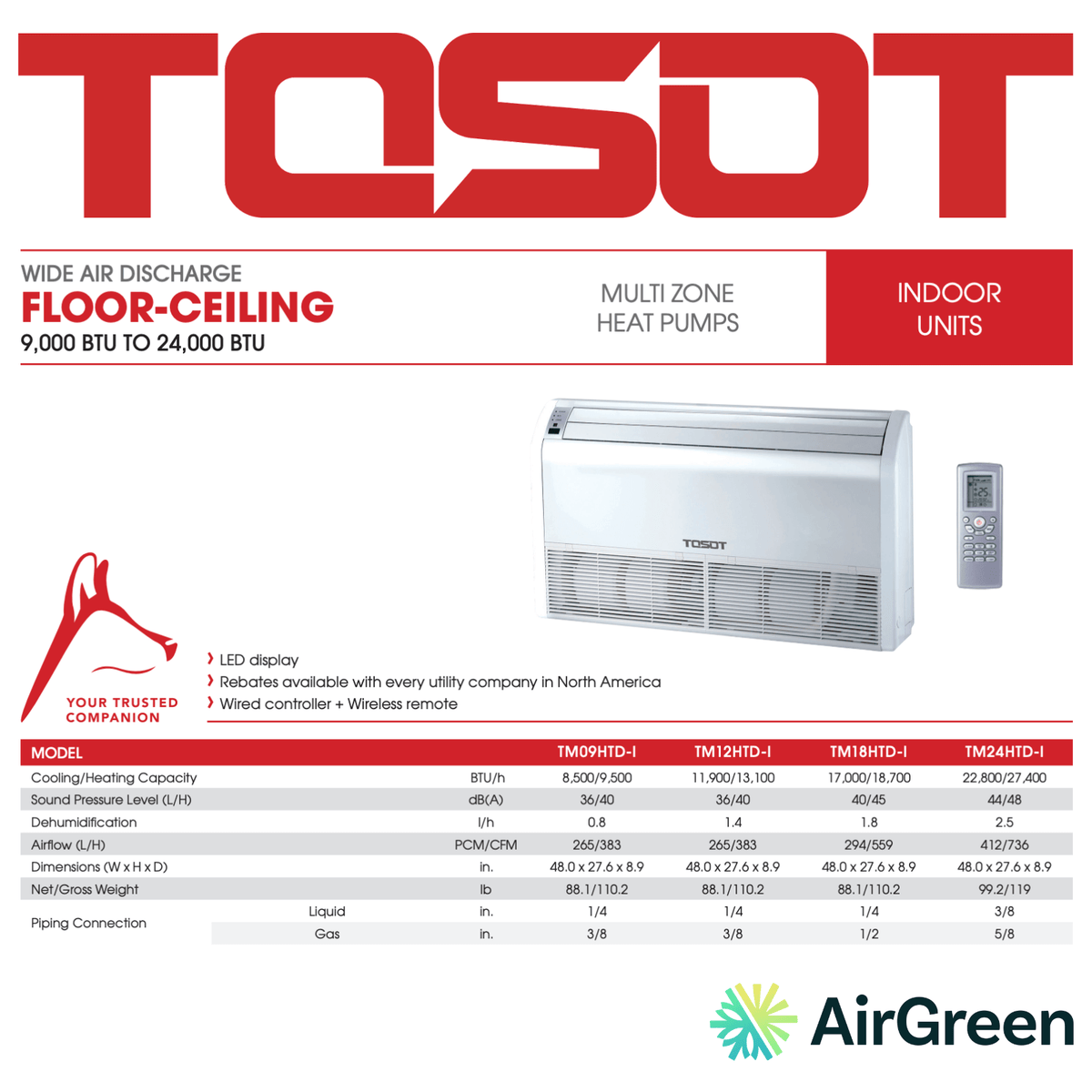 We are delighted to inform you that purchasing and installing the TOSOT Floor-Ceiling Unit may qualify you for subsidies and financial incentives from all utility companies in North America, making this investment even more attractive.