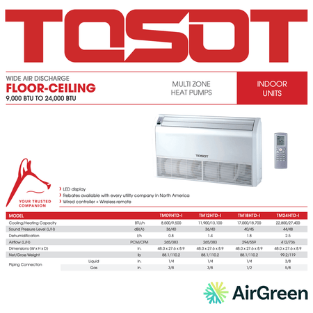 Purchasing the TOSOT Floor-Ceiling Unit from AirGreen comes with an additional benefit: eligibility for subsidies available from every utility company in North America. These financial aids, combined with reduced energy consumption, make investing in a quality air conditioning solution more accessible and advantageous in the long term.