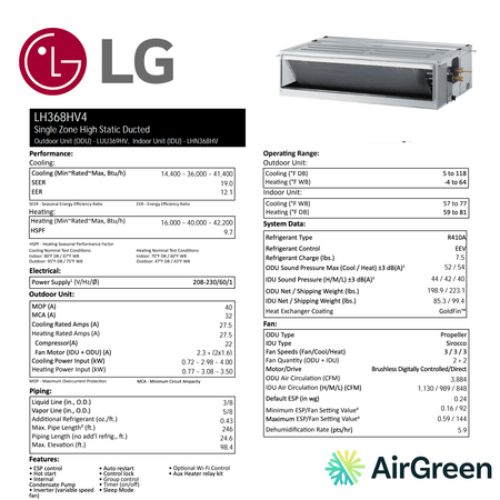 The LG High Static Pressure Duct Fan is equipped with numerous advanced features to enhance your comfort and ease of use: