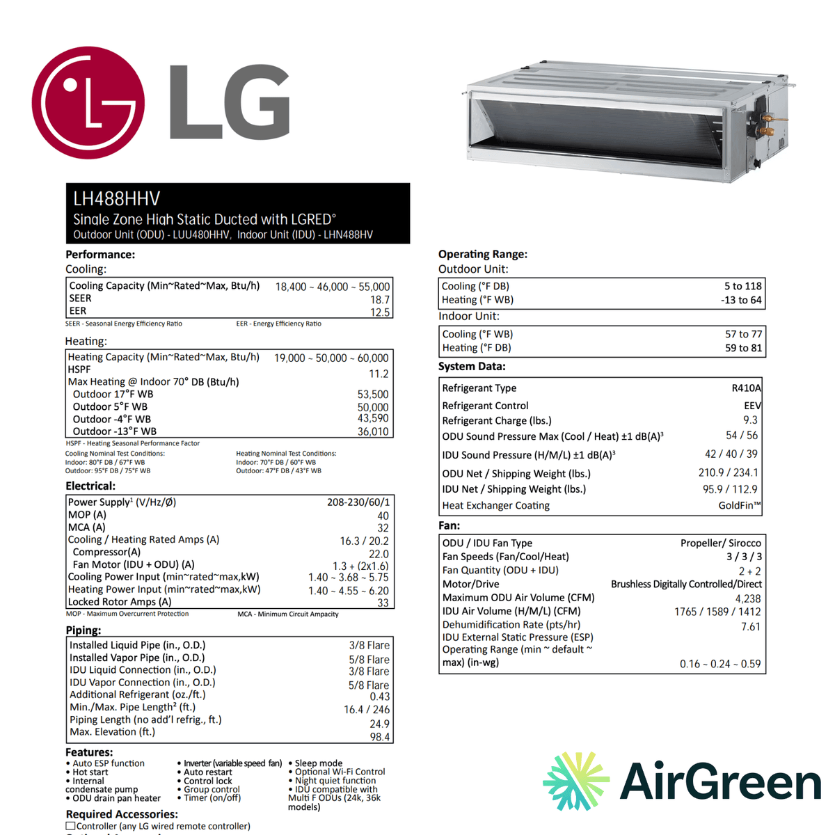 In Conclusion, the LG High Static Pressure Duct Fan represents a top choice for those seeking an efficient, economical, and discreet air conditioning system. With AirGreen, you not only get an exceptional product but also superior installation and follow-up service. For an unmatched comfort experience, trust AirGreen and the LG High Static Pressure Duct Fan.