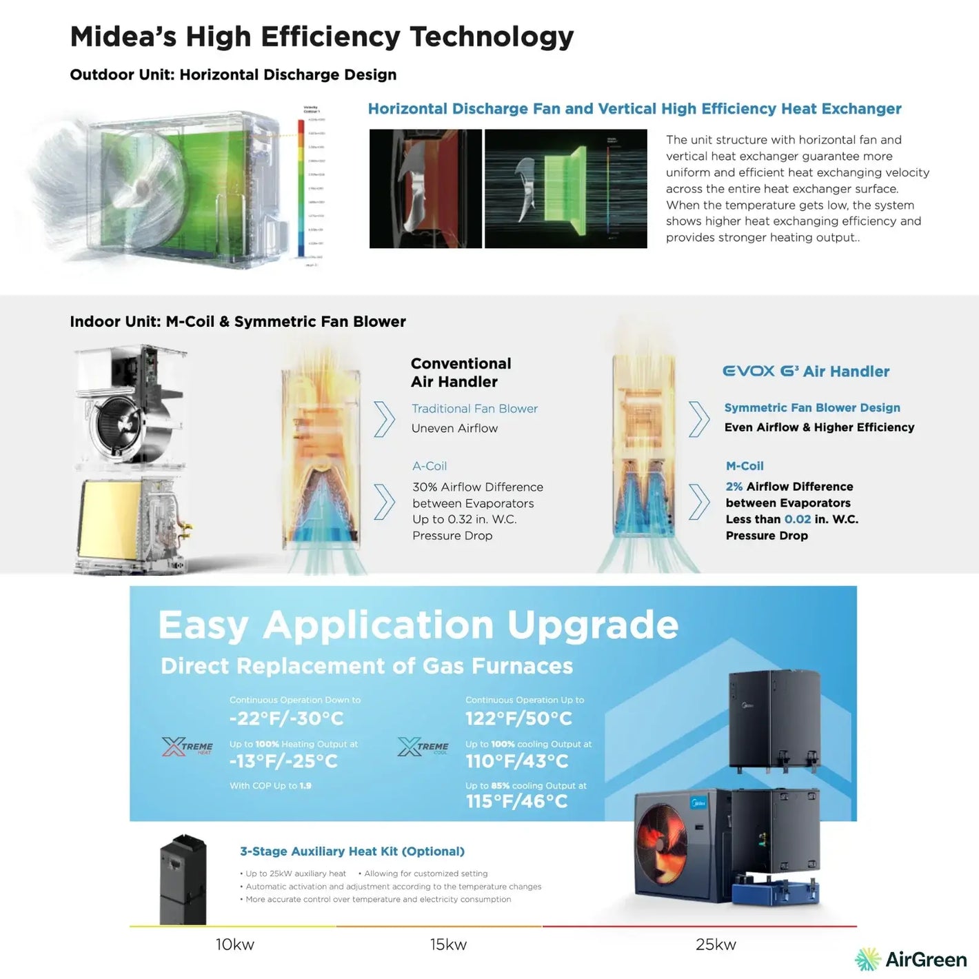 En 2025, Midea a franchi une nouvelle étape avec le lancement de la troisième génération EVOX, appelée EVOX G³. Cette gamme représente une véritable évolution dans le monde des systèmes centraux de thermopompes, combinant performance énergétique accrue, fiabilité renforcée et technologies intelligentes.
