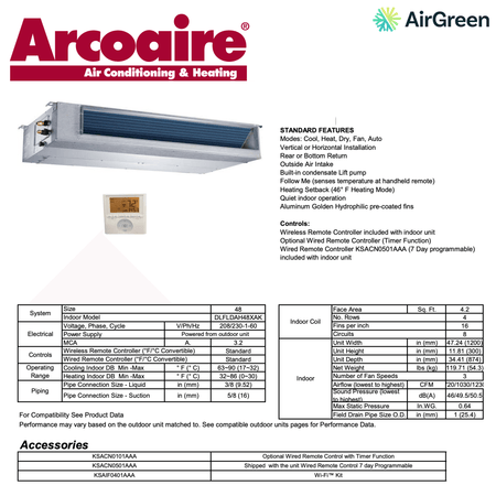 ArcoAire Gainable DLFSDA à Conduit | 48 000 BTU | Montréal, Laval, Longueuil, Rive Sud et Rive Nord