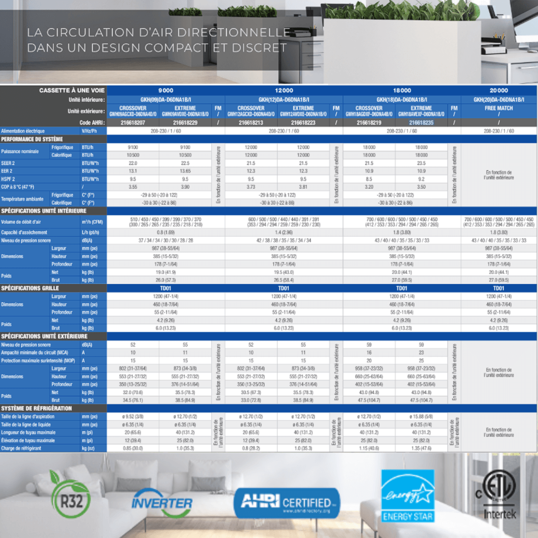 Dans le domaine du CVAC, certains produits se distinguent non pas par un effet spectaculaire immédiat, mais par la qualité durable du confort qu’ils procurent jour après jour. La cassette de plafond 1 voie GREE EXTREME R32 | 18 000 BTU fait clairement partie de cette catégorie. Elle s’adresse aux projets où la performance thermique doit s’intégrer discrètement à l’architecture, sans compromis sur la stabilité, le silence ou la fiabilité, même dans les conditions climatiques rigoureuses du Québec.