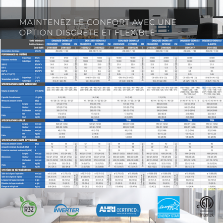 Données techniques essentielles de la GREE CROSSOVER R32 | 12000 BTU
