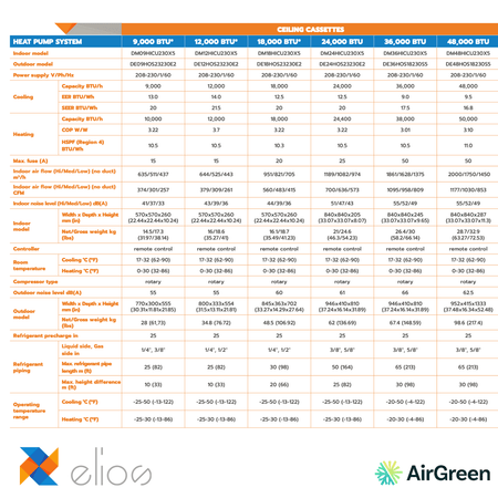 Caractéristiques Techniques de la Thermopompe Cassette ELIOS eMatch 24 000 BTU