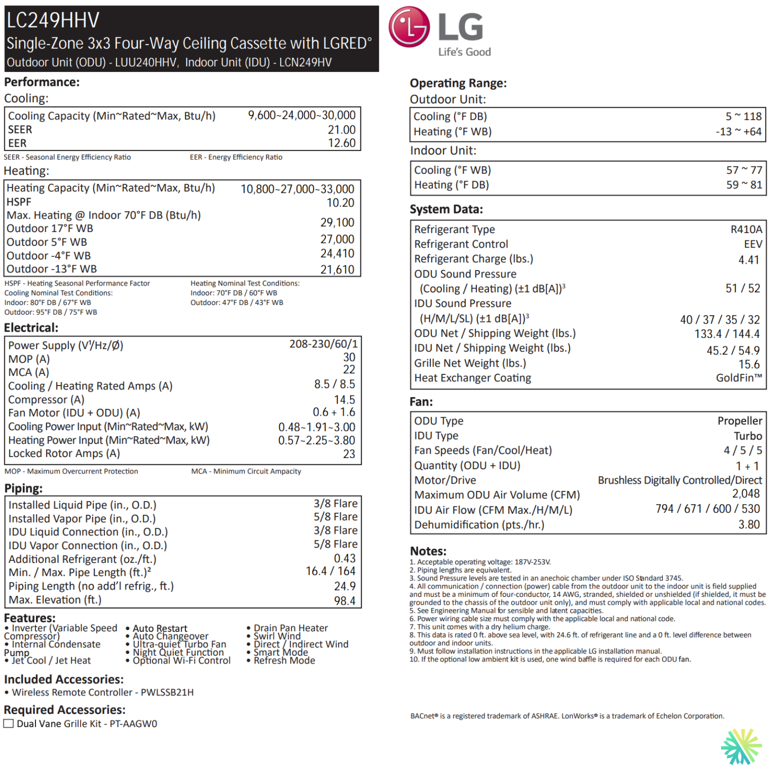 Cassette de Plafond LG DUAL VANE | 24 000 BTU | Montréal, Laval, Longueuil, Rive Sud & Rive Nord