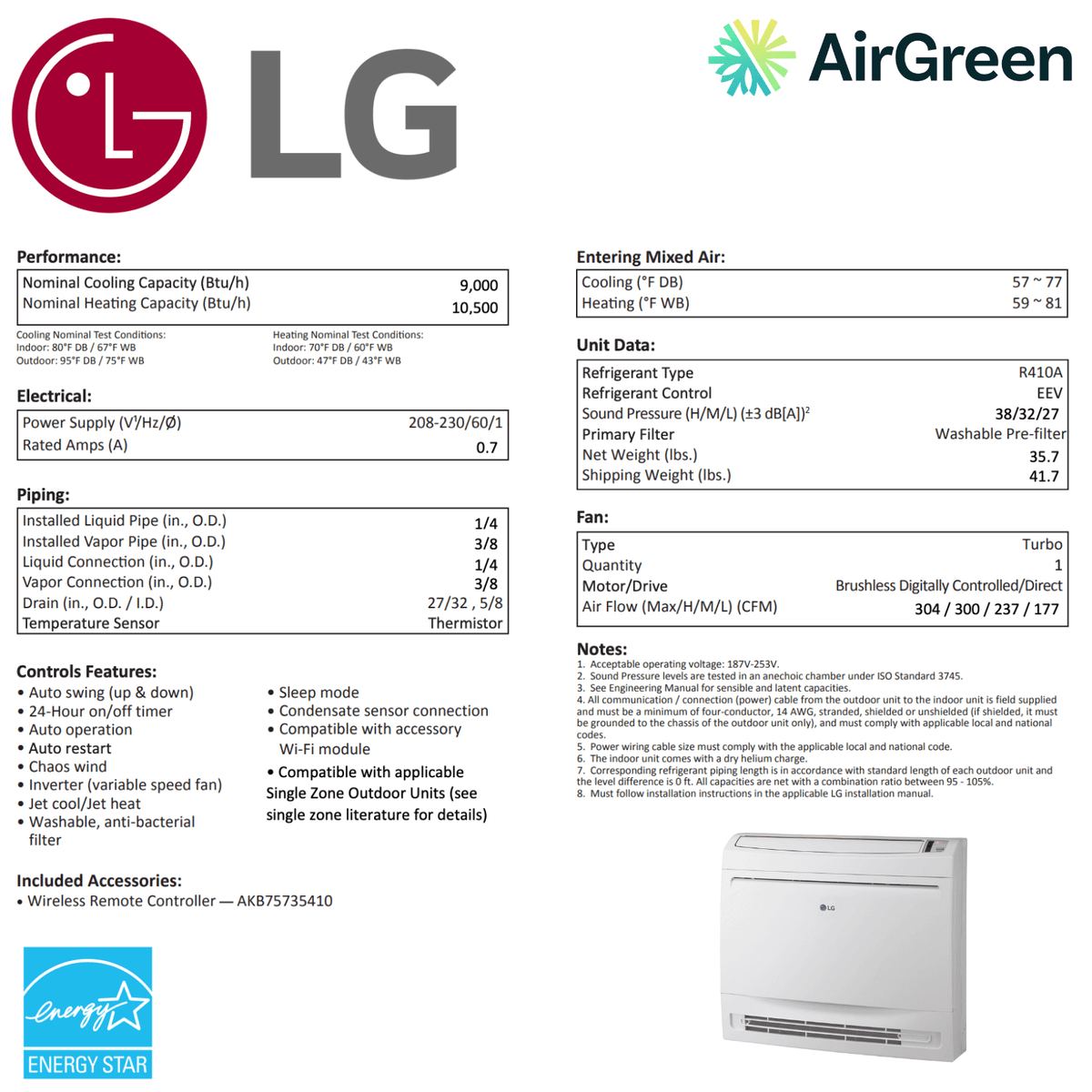 Le climatiseur console au plancher LG LQN090HV4 est conçu pour offrir une performance exceptionnelle et une expérience utilisateur sans pareil. Voici un aperçu de ses caractéristiques distinctives :
