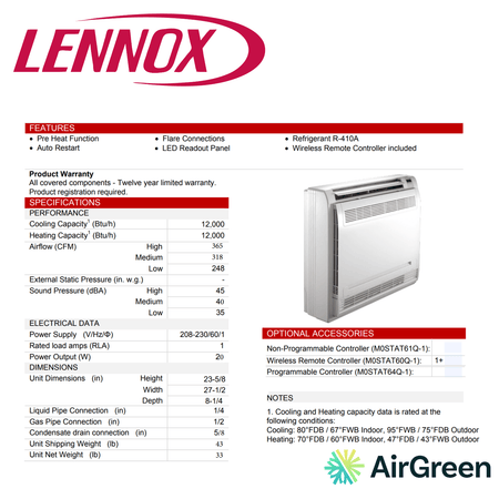 Console de Plancher LENNOX MFMA | 12 000 BTU | Montréal, Laval, Longueuil, Rive Sud et Rive Nord
