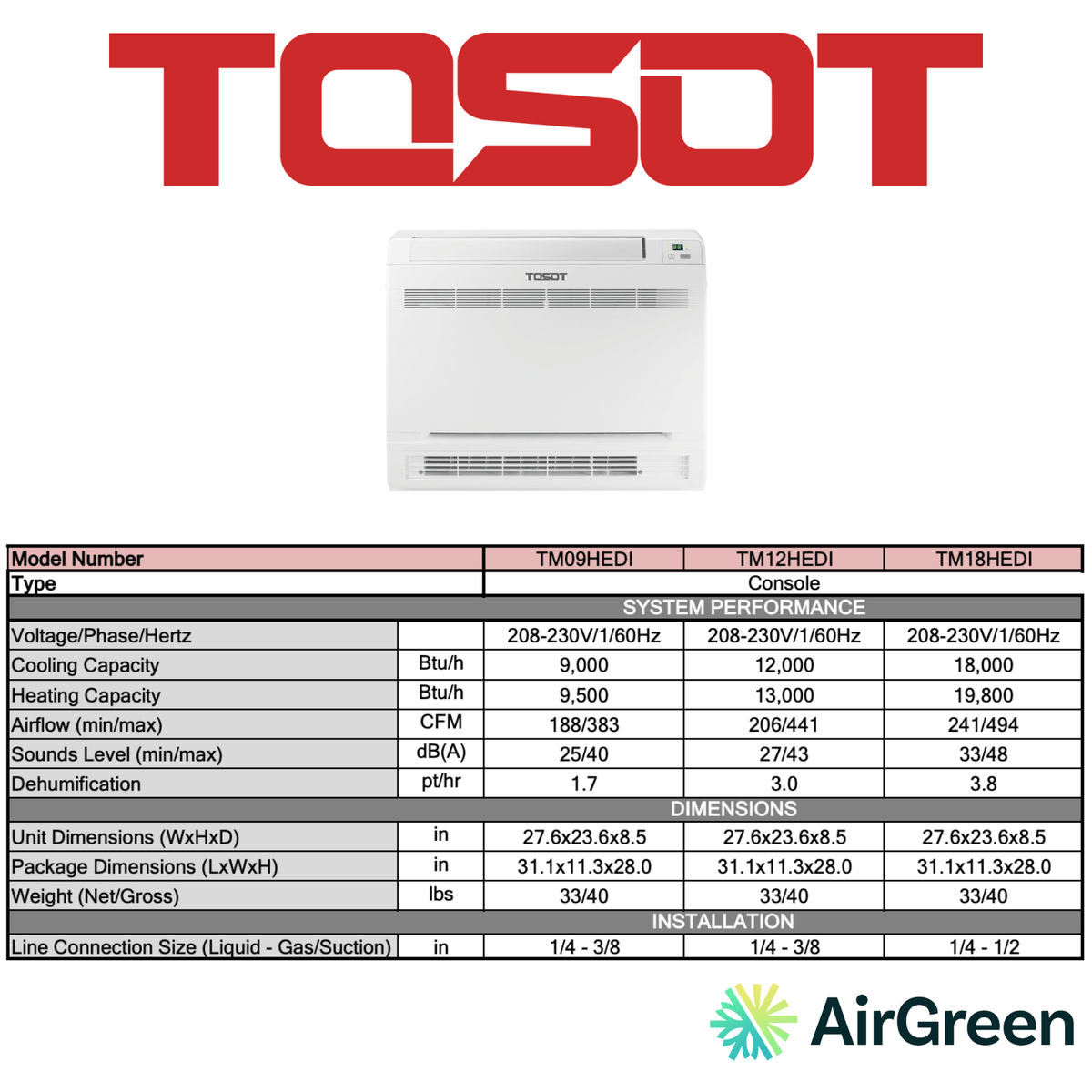 Console de Plancher TOSOT | 18 000 BTU | Installation à Montréal, Laval, Longueuil, Rive Sud et Rive Nord