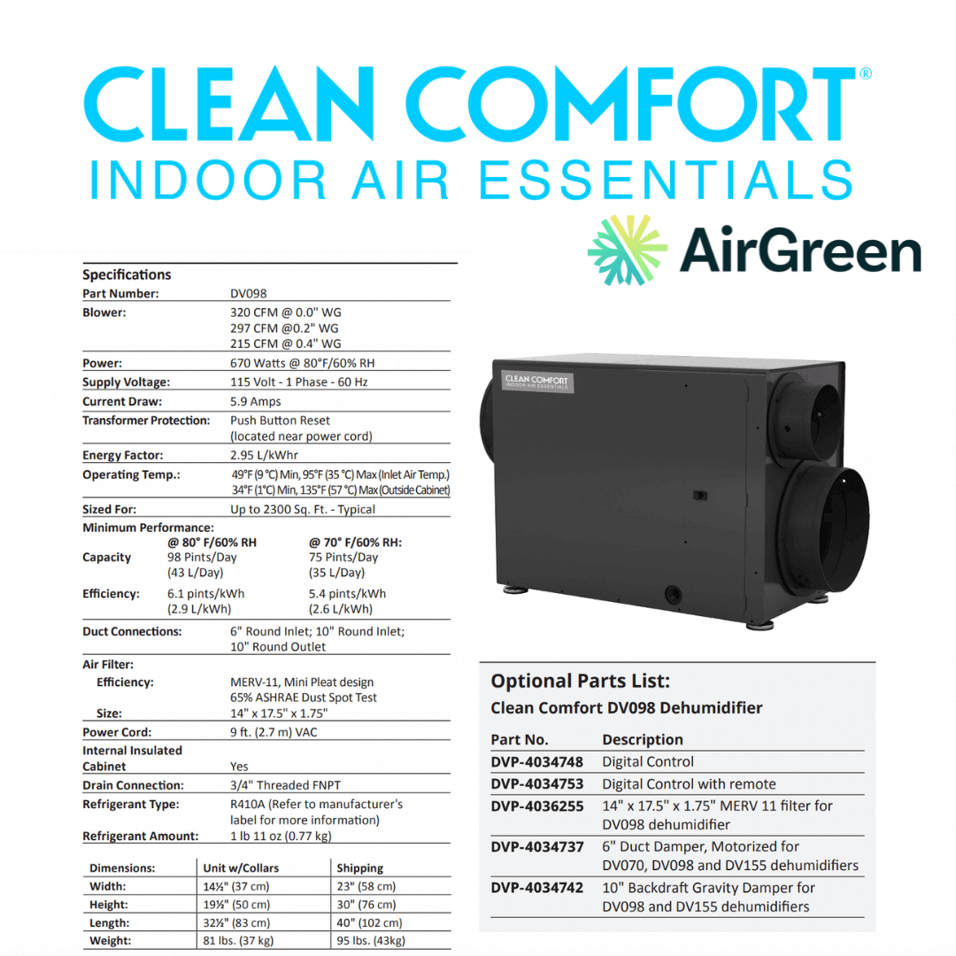 Déshumidificateur Clean Comfort DV098 | Installation à Montréal, Laval, Longueuil, Rive Sud et Rive Nord