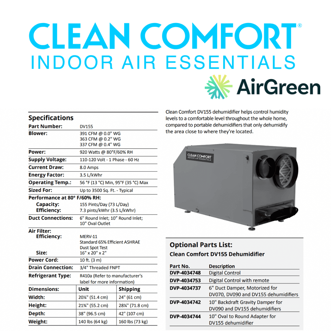 Déshumidificateur Clean Comfort DV155 | Installation à Montréal, Laval, Longueuil, Rive Sud et Rive Nord