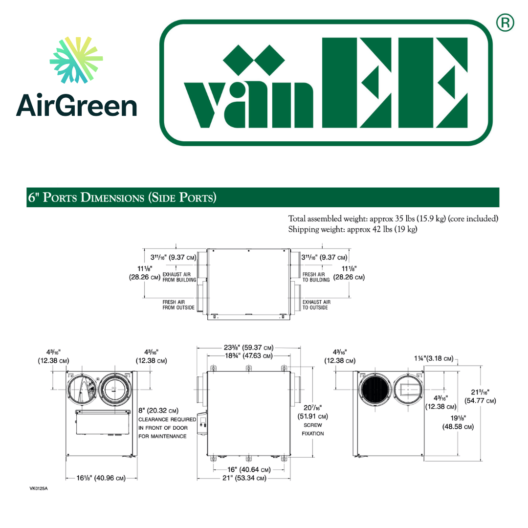 Avec une garantie de 5 ans sur les pièces et une garantie à vie limitée sur le noyau ou la roue thermique, AirGreen se tient fermement derrière la série AI de vänEE. Bien qu'elle ne soit pas qualifiée ENERGY STAR©, ses performances et sa certification HVI parlent d'elles-mêmes en termes de qualité et d'efficacité.