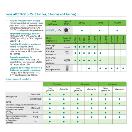 Le FUJITSU AIRSTAGE J-7S Mini-VRF 36 000 BTU est admissible aux programmes de subventions provinciales, notamment LogisVert, ce qui améliore sensiblement la rentabilité du projet. Chez AirGreen, nous intégrons systématiquement cette donnée dès la phase de conception afin d’éviter toute surprise.