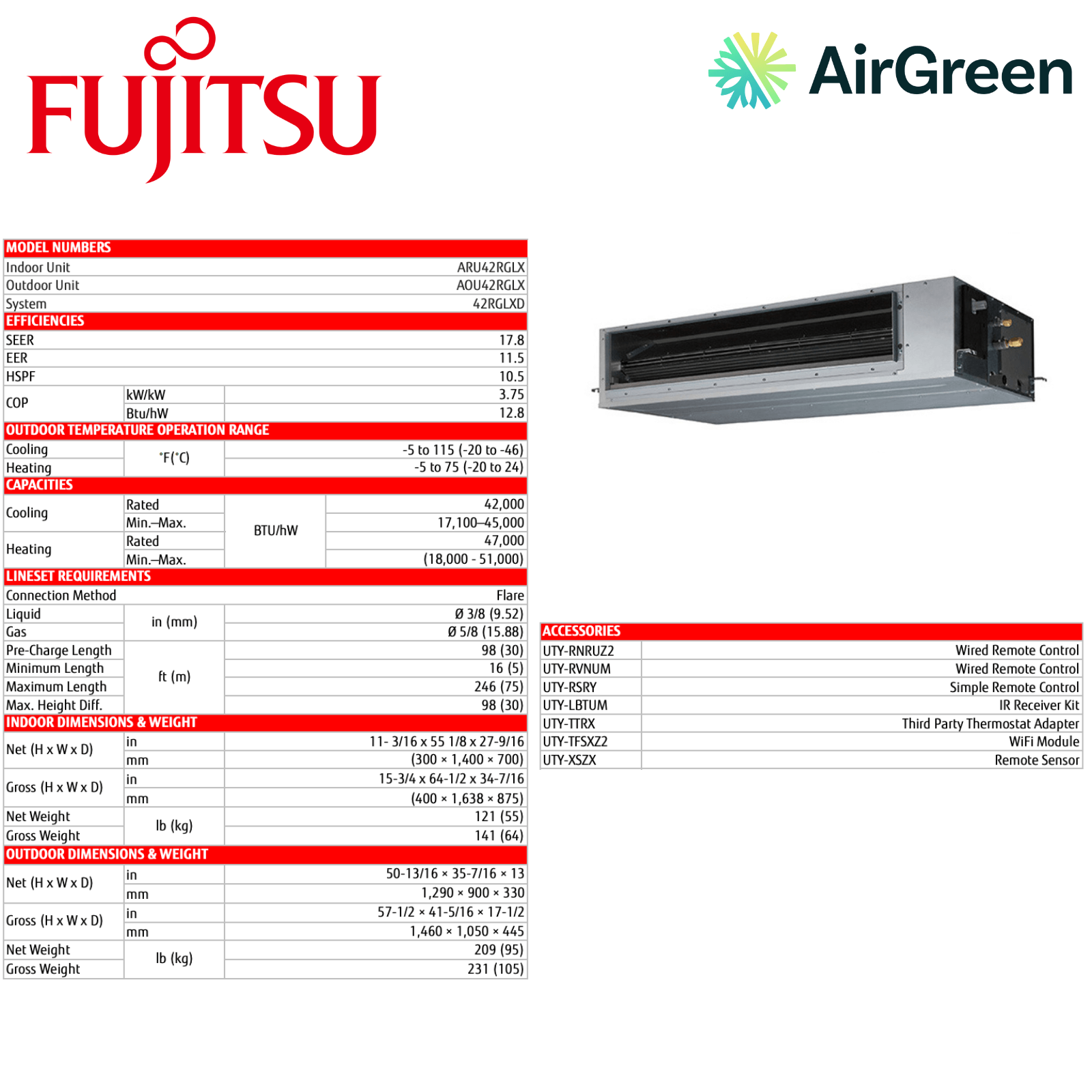 Gainable Fujitsu RGLX | 42 000 BTU | Installation à Montréal, Laval, Longueuil, Rive Sud et Rive Nord