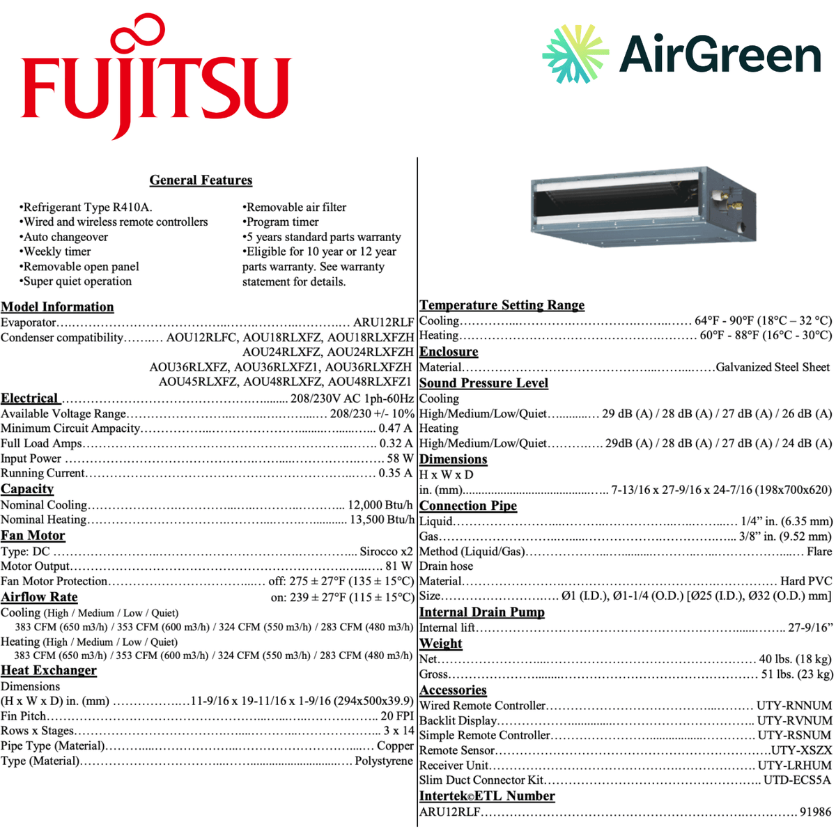Ces spécifications témoignent de l'engagement de Fujitsu vers une performance supérieure et un respect de l'environnement, faisant du système à conduit gainable RLF un choix privilégié pour les résidents de Montréal et ses environs.
