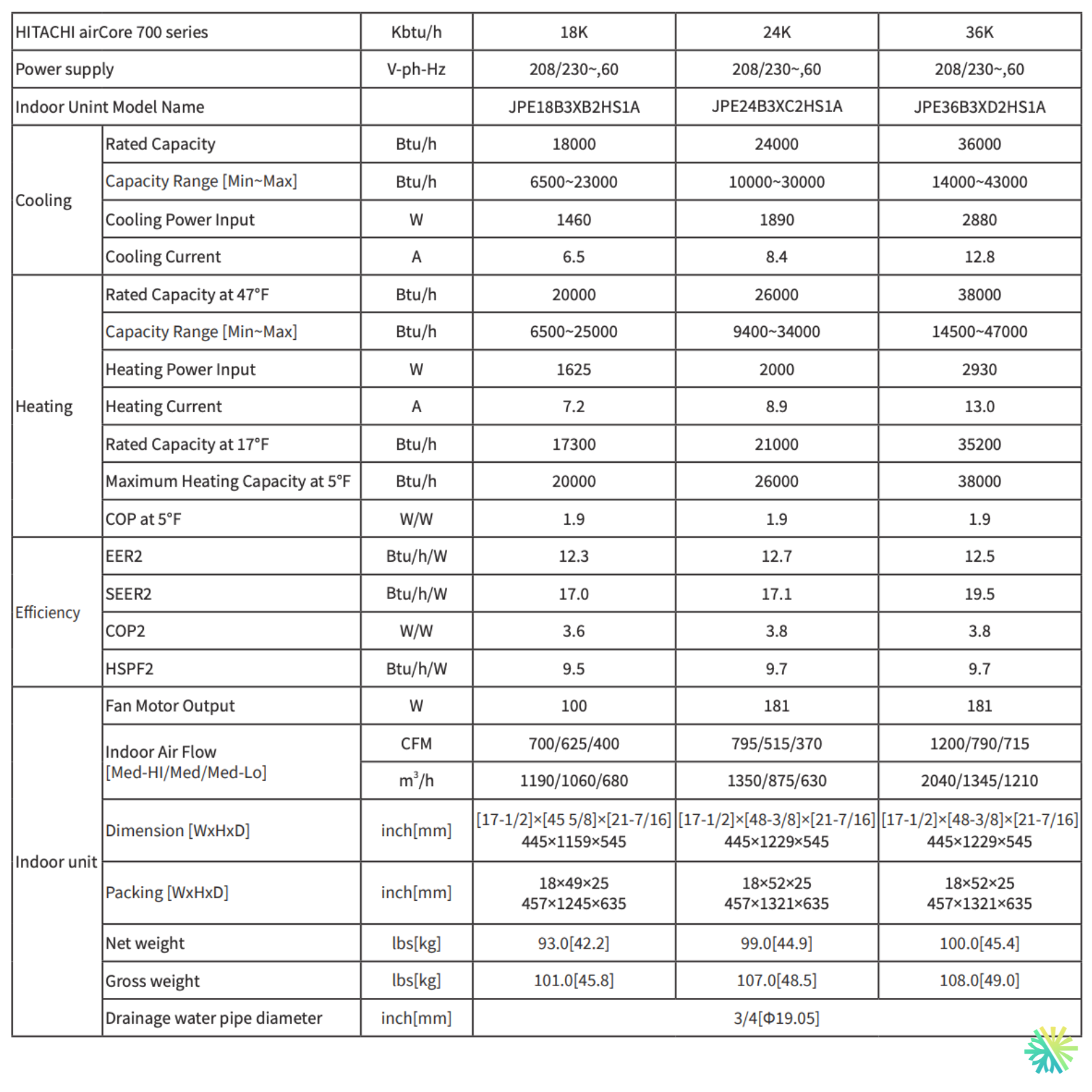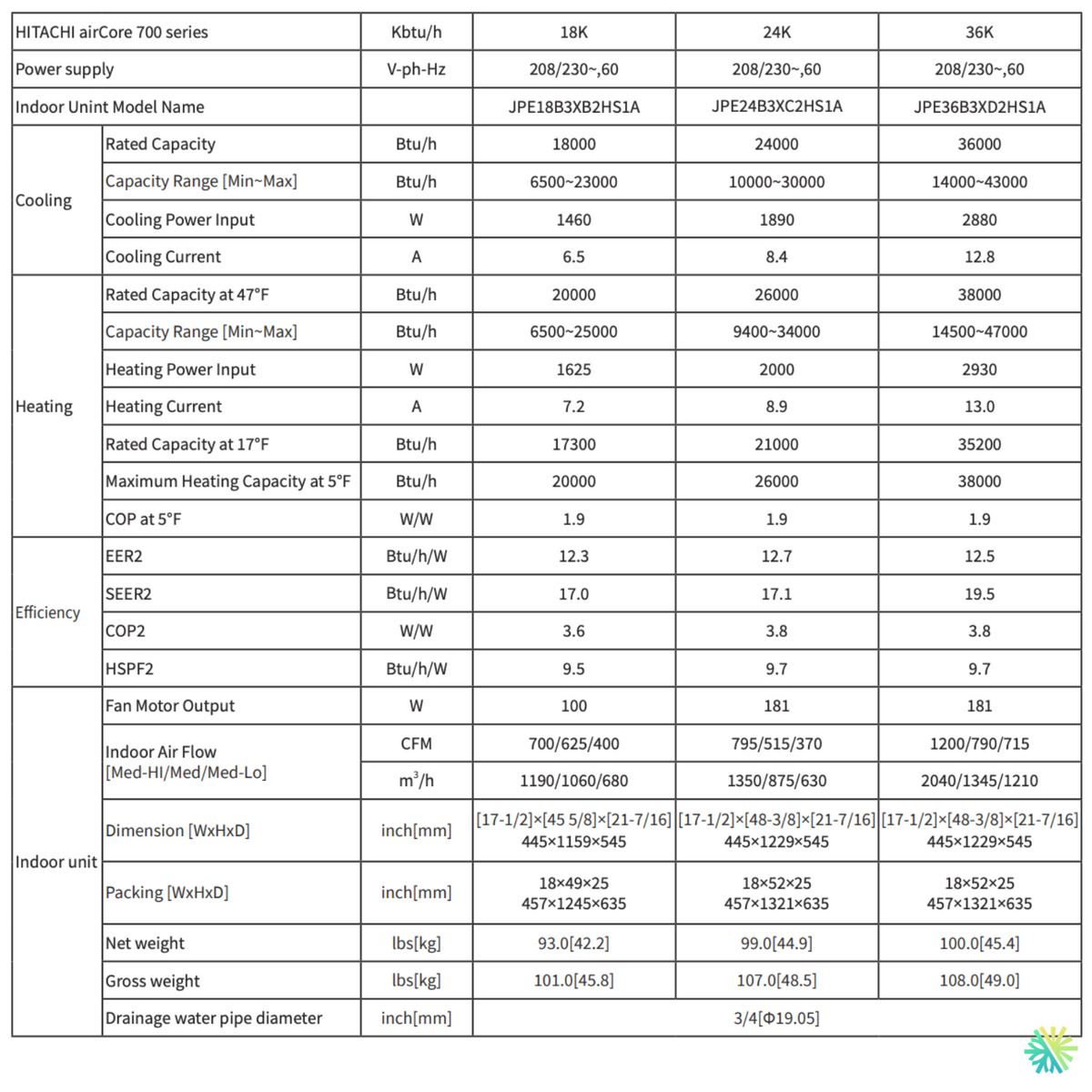 La Hitachi R32 18 000 BTU a été conçue spécifiquement pour maintenir un rendement constant même à -25 °C.