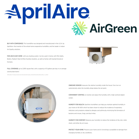 Achetez en toute confiance : L'AprilAire 300 se présente comme un témoignage de l'héritage d'AprilAire, les pionniers de l'humidificateur évaporatif pour toute la maison depuis 1954. Ce n'est pas seulement un produit ; c'est un morceau d'histoire.