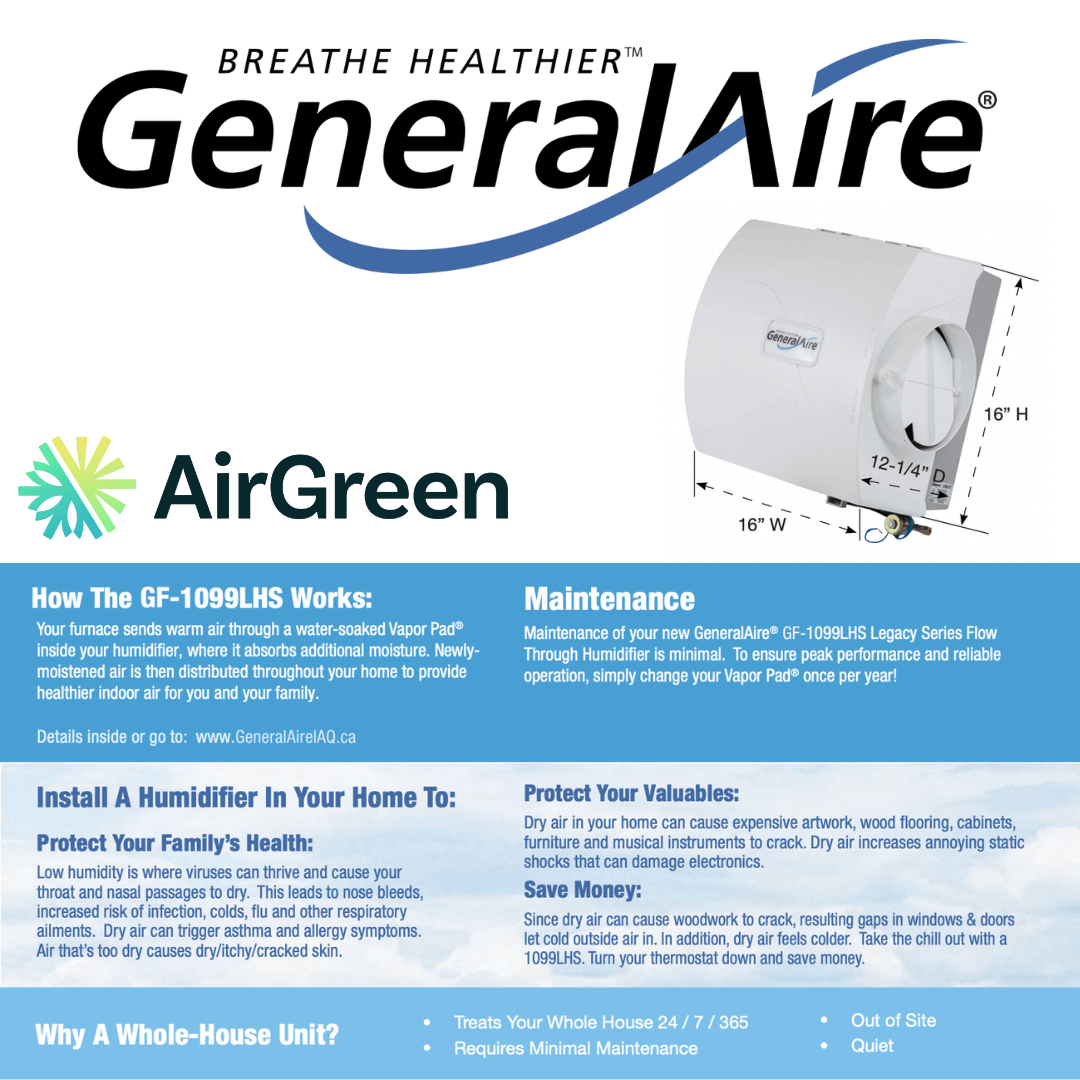 Humidificateur GeneralAire GF1099LHD | Installation à Montréal, Laval, Longueuil, Rive Sud et Rive Nord