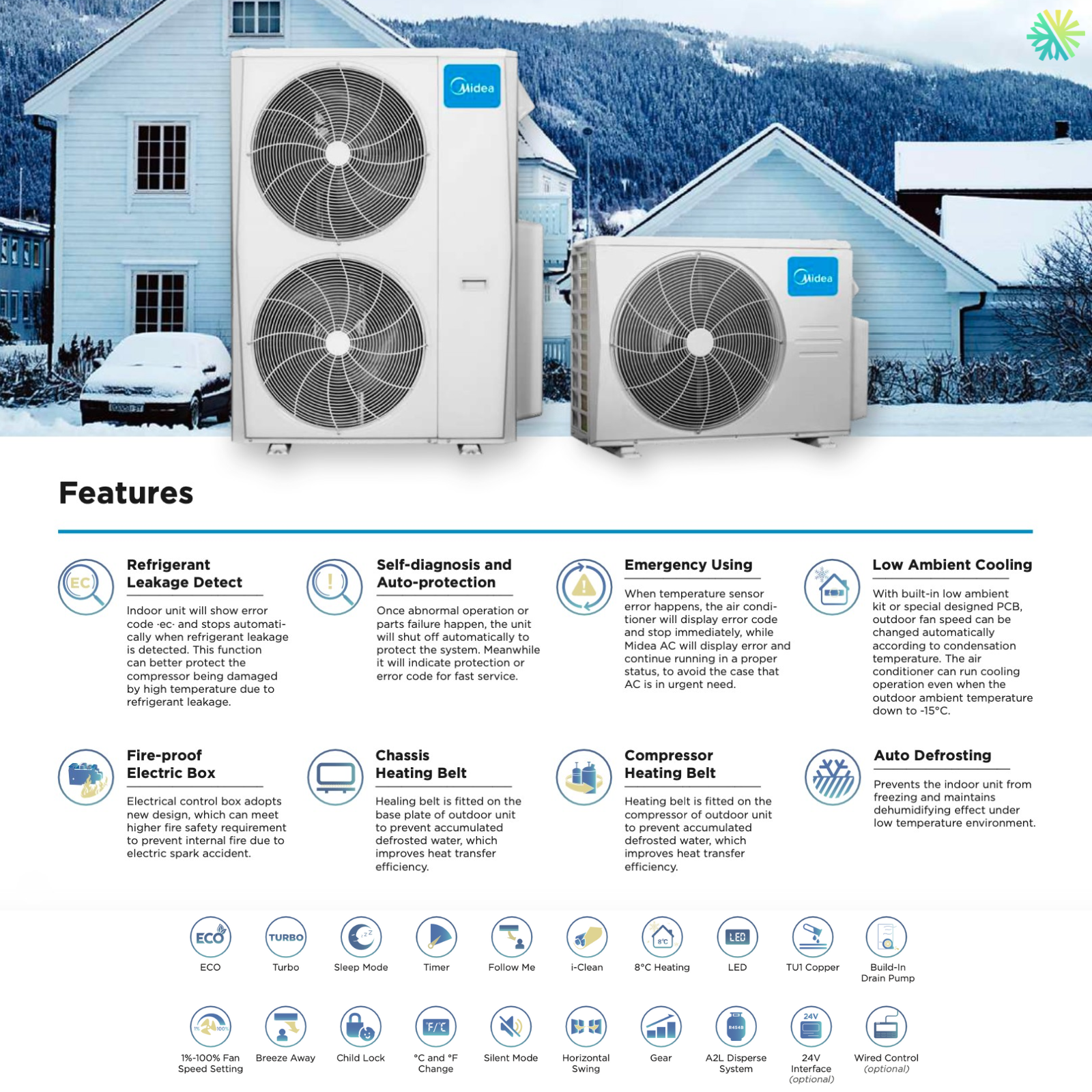 Conçue pour le climat du Québec, cette unité maintient une capacité de chauffage jusqu’à -30°C, un atout crucial pour les hivers de Montréal, Laval, Longueuil, la Rive Nord et la Rive Sud.
