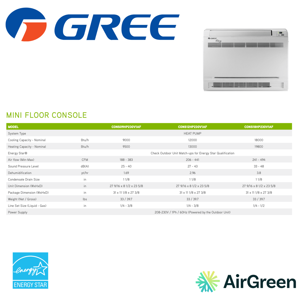 Mini Console de Plancher GREE | 18 000 BTU | Montréal, Laval, Longueuil, Rive Sud et Rive Nord