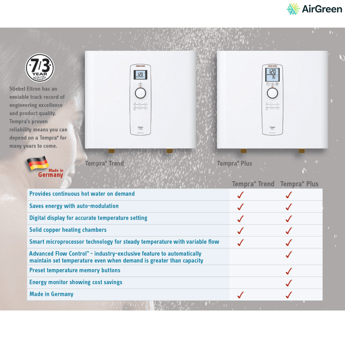 Stiebel Eltron | Tempra 20 Trend 20 kW 3.90 GPM Chauffe-Eau Instantané avec Auto-Modulation d'Énergie