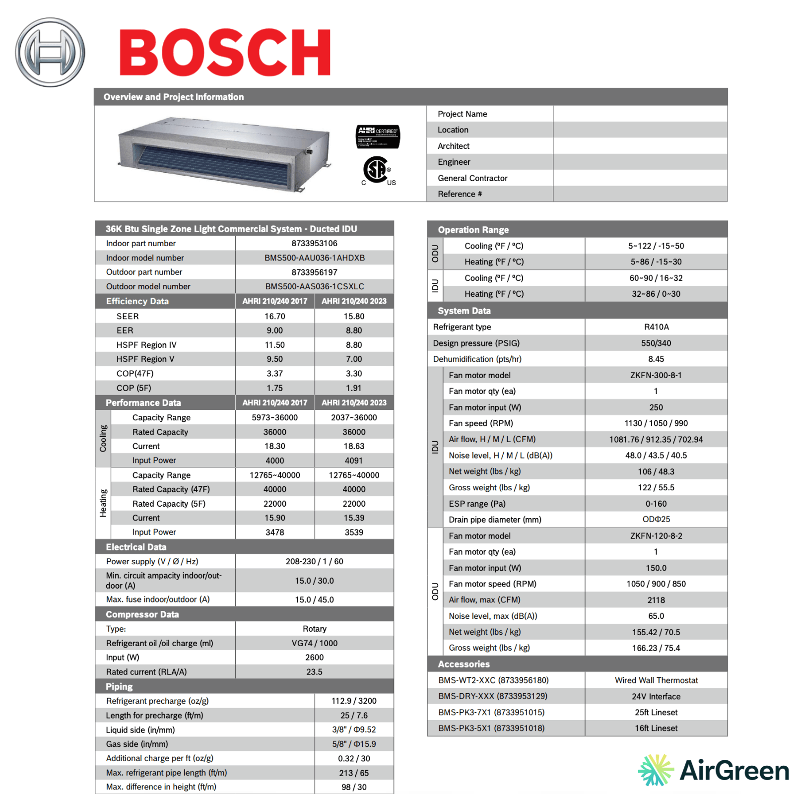 Système Gainable BOSCH | 36 000 BTU | Montréal, Laval, Longueuil, Rive Sud et Rive Nord
