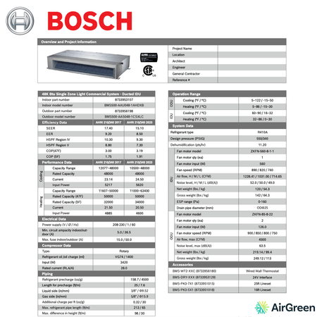 Le Système Gainable BOSCH se démarque par ses performances et sa qualité supérieure. Doté d'une capacité de refroidissement impressionnante de 48 000 BTU, il est conçu pour offrir un confort sans égal dans les grandes espaces. Voici quelques-unes de ses caractéristiques clés :