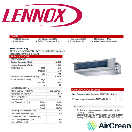 Chez AirGreen, nous comprenons l'importance d'un espace de vie confortable, quelle que soit la saison. C'est pourquoi nous sommes fiers de vous présenter notre système gainable Lennox de 12 000 BTU, une solution de climatisation et de chauffage discrète et efficace pour votre domicile ou votre bureau. Ce système, conçu pour Montréal, Laval, Longueuil, ainsi que les régions de la Rive Sud et de la Rive Nord, allie performance, efficacité énergétique et faible impact sonore pour un confort inégalé.
