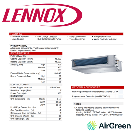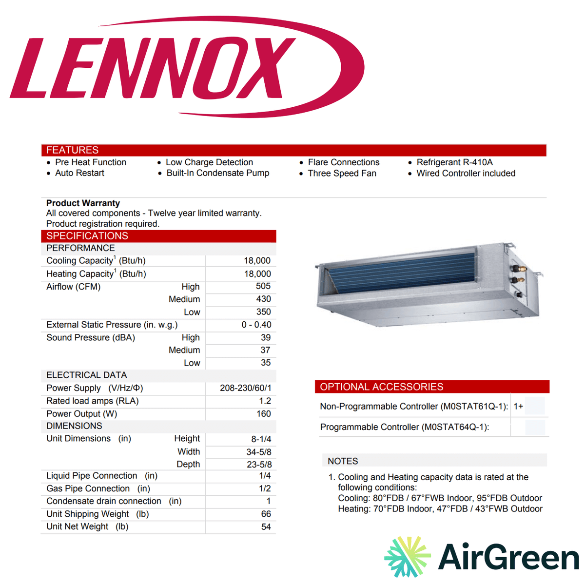 Système Gainable Lennox | 18 000 BTU | Montréal, Laval, Longueuil, Rive Sud et Rive Nord