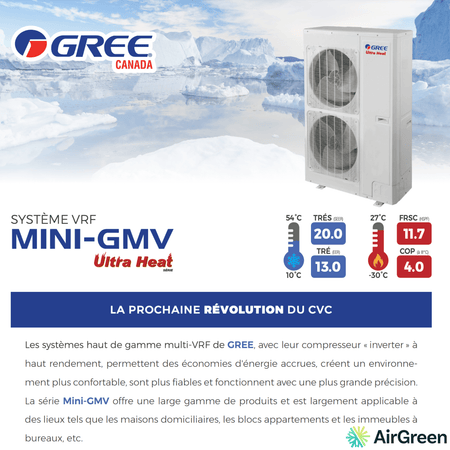 Dans l'univers des systèmes de chauffage, ventilation et climatisation (CVC), l'innovation et l'efficacité énergétique sont au cœur des préoccupations des utilisateurs et des installateurs. AirGreen, une entreprise leader dans le secteur du CVC à Montréal, Laval, Longueuil ainsi que sur la Rive Nord et la Rive Sud, est fière de présenter le système VRF (Volume de Réfrigérant Variable) GREE Mini-GMV, une solution de pointe conçue pour offrir une performance inégalée et un confort optimal dans divers environnements résidentiels et commerciaux.