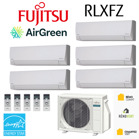 Thermopompe 5-Têtes Fujitsu RLXFZ | Compresseur 45 000 BTU | Montréal, Laval, Longueuil, Rive Sud et Rive Nord