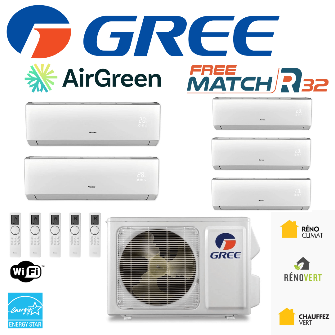 Thermopompe 5-Zone Gree FreeMatch R32 | 42 000 BTU | Montréal, Laval, Longueuil, Rive Sud & Rive Nord